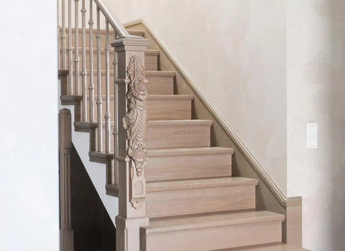1. Лестница — часть интерьера: Каждая лестница уникальна — будь то прямая, Г-образная, П-образная или винтовая. Облицовка дубом, ясенем или буком должна не только быть прочной, но и гармонично вписываться в стиль дома. Наш инженер-технолог приедет на замер, обсудит ваши идеи и подскажет оптимальные решения по выбору породы и оттенка дерева. Это позволит избежать лишних затрат и получить результат, который будет радовать долгие годы.